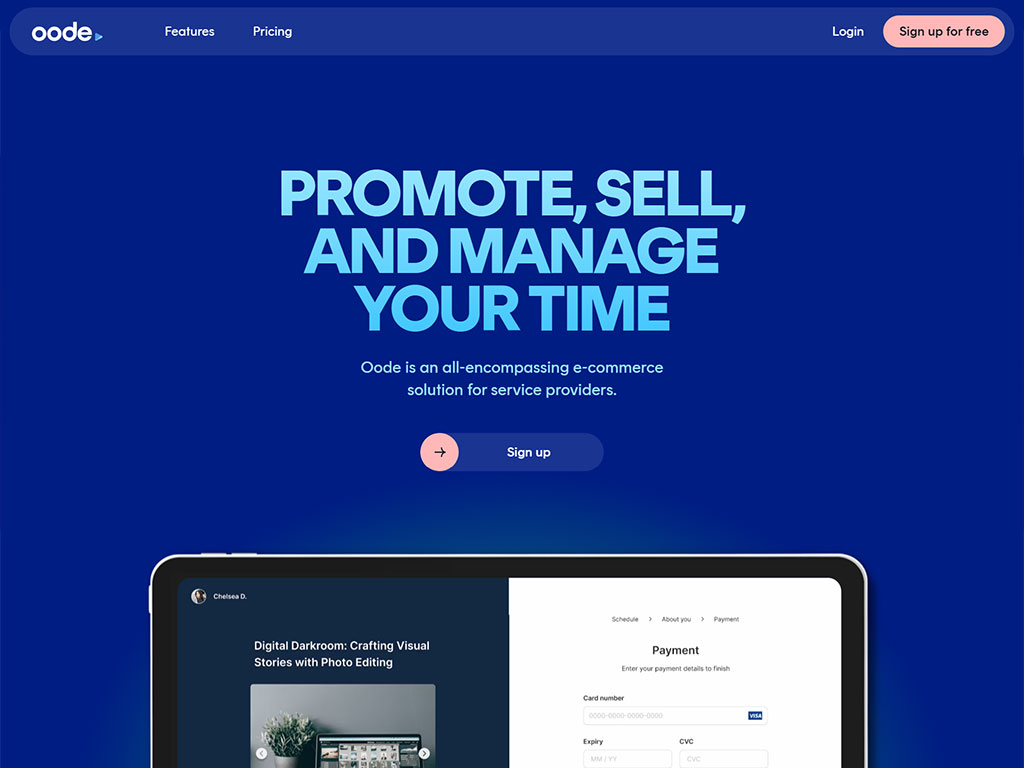 Oode is an all-in-one business management platform designed to help service providers promote, sell, and manage their offerings efficiently. It offers features such as customizable payment links, online scheduling tools, and real-time sales analytics, enabling users to create branded checkout experiences, automate bookings, and gain insights into their business performance. Oode also provides a mobile app for managing bookings, customer interactions, and bookkeeping on the go. Trusted by over 1,500 businesses across various industries, Oode aims to empower professionals to turn their skills into profits.